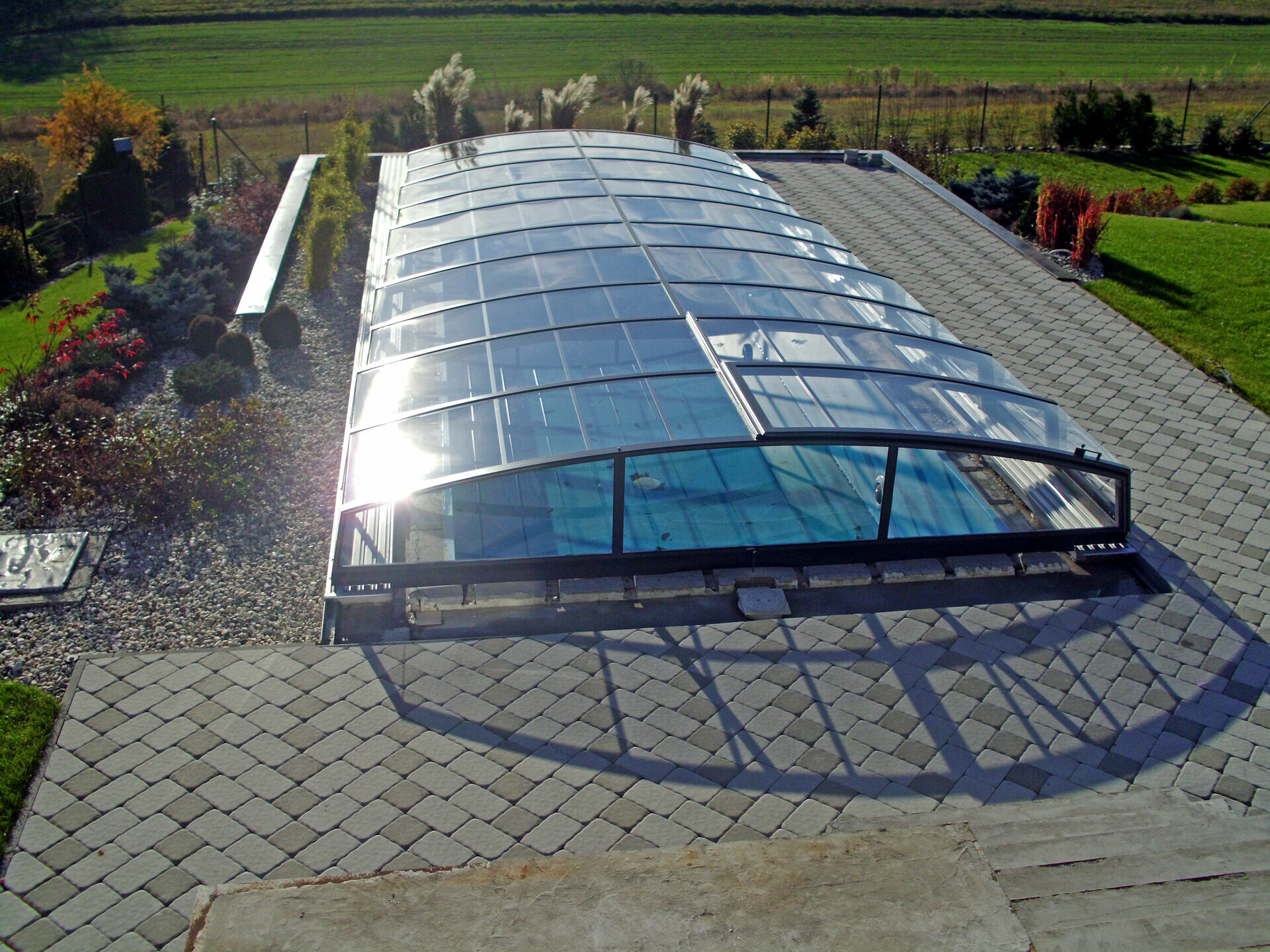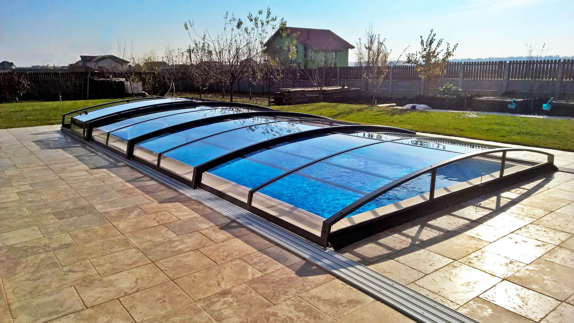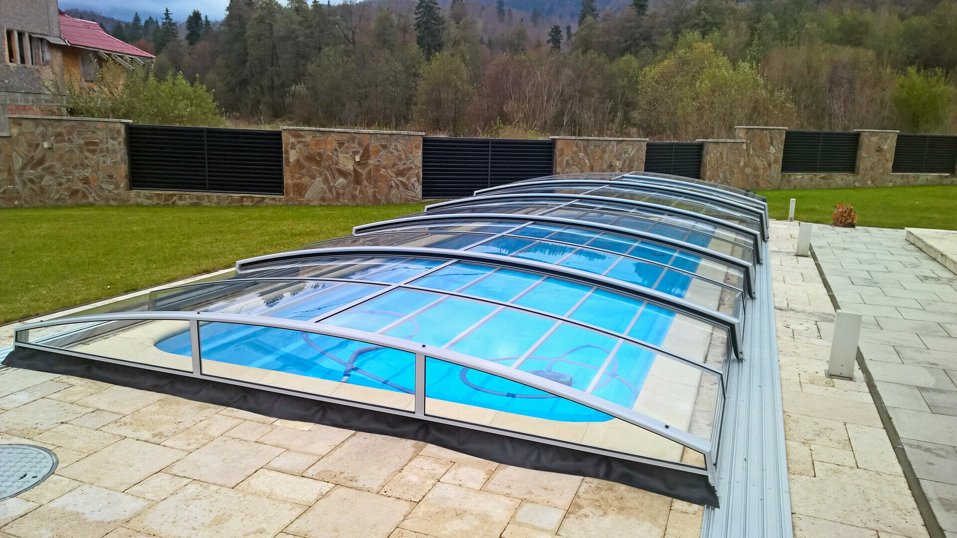Najnižšie zastrešenie bazéna z radu AZURE kombinuje oblú strechu a šikmé steny. Vďaka tomu získava zastrešenie veľmi ladný a zároveň moderný tvar, ktorý sa hodí do každej záhrady.
