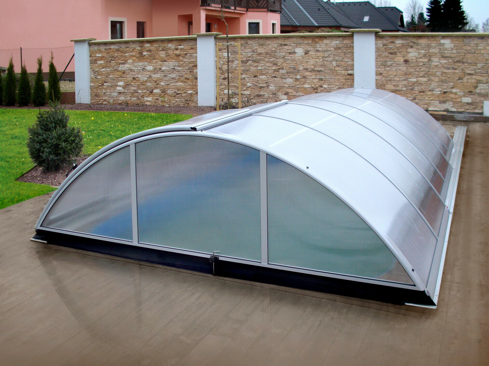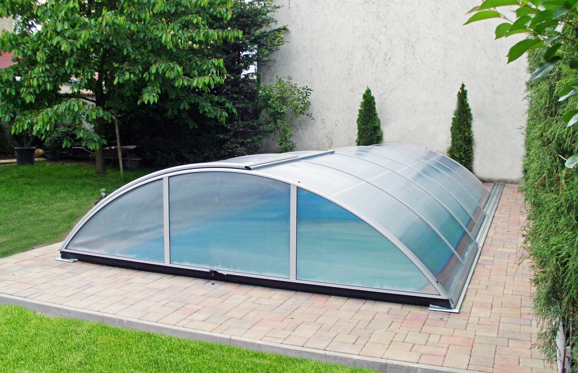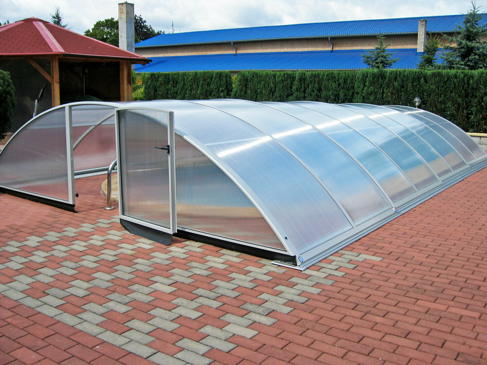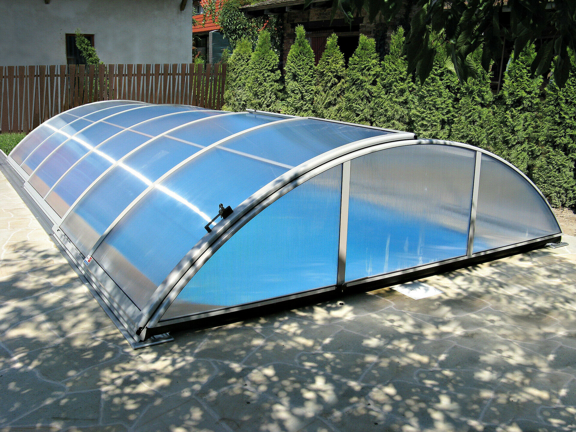 Využíva výhody jedného polomeru hliníkových profilov - zastrešenie tak vyzerá veľmi elegantne. Možnosť voľby výplne - jednokomôrkový alebo kompaktný polykarbonát (pod názvom AZURE kompakt). Výber z dvoch farieb prevedenia hliníkových profilov - strieborná alebo antracitová.