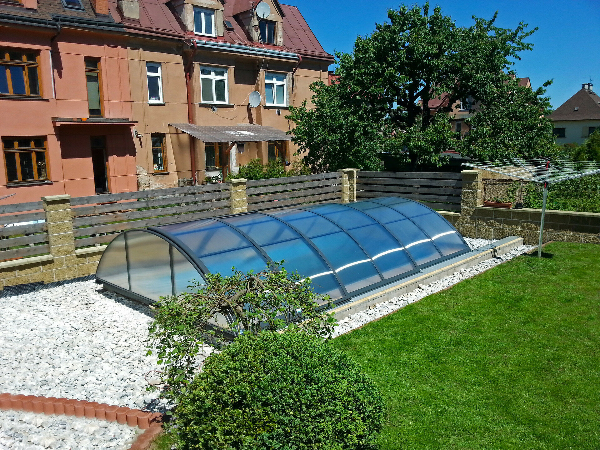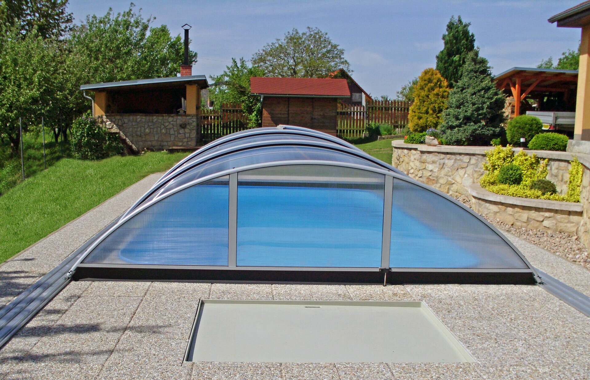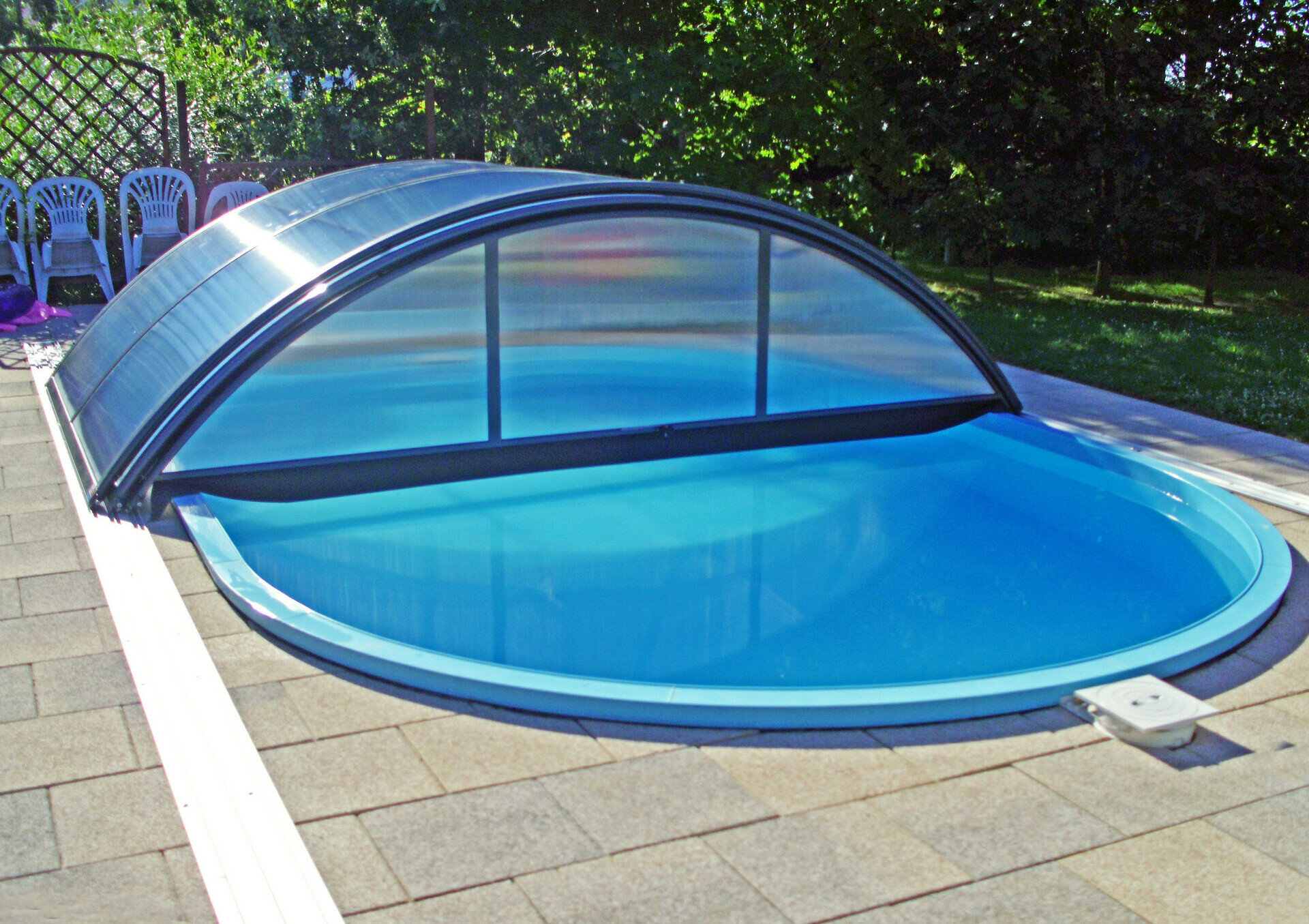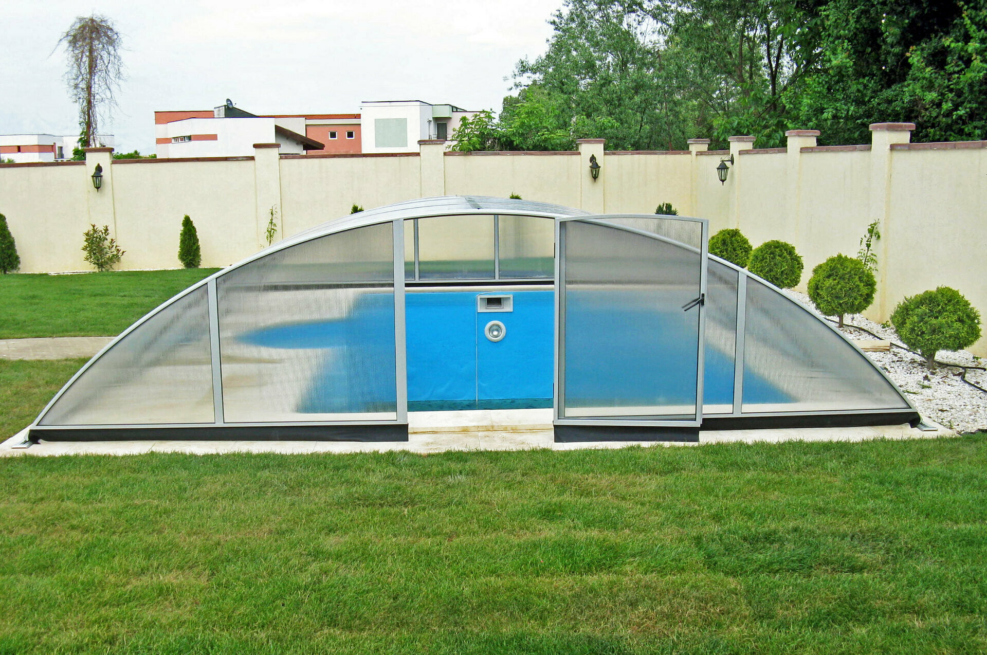 Využíva výhody jedného polomeru hliníkových profilov - zastrešenie tak vyzerá veľmi elegantne. Možnosť voľby výplne - jednokomôrkový alebo kompaktný polykarbonát (pod názvom AZURE kompakt). Výber z dvoch farieb prevedenia hliníkových profilov - strieborná alebo antracitová.
